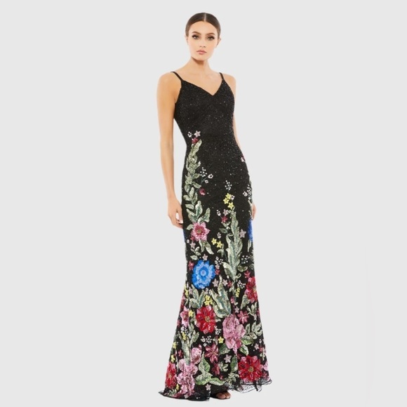 Mac Duggal 5475 NWT Floral Embellished Spaghetti Strap Gown