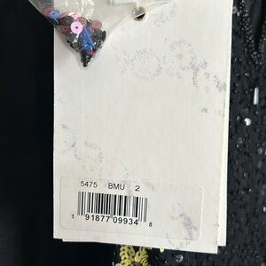 This gorgeous gown is decked from top to tip in twinkling hand-applied sequins. Cut with a V-neckline and spaghetti straps, the floor-length dress opens with an all-black bodice and introduces color at the gently flared hem in the form of climbing embellished flowers.