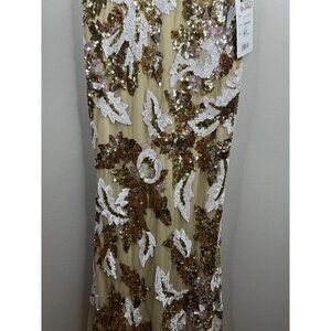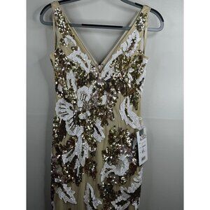 Mac Duggal Floral Embellished Sequin V-Neck Evening Gown Dress
