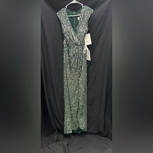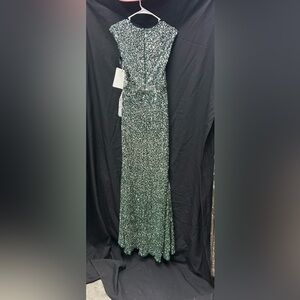 Mac Duggal 5489 NWT Cap Sleeve Sequined High Slit Gown