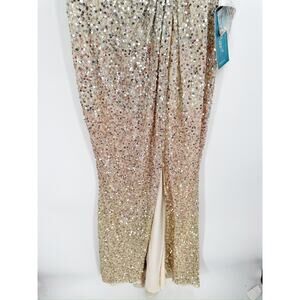 Mac Duggal 5489 Nude Cap Sleeve Sequined High Slit Gown Size 8 New