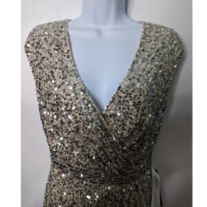Mac Duggal 5489 Ombre Sequin Formal Gown Nude Silver Slit Evening Dress 6 NWT