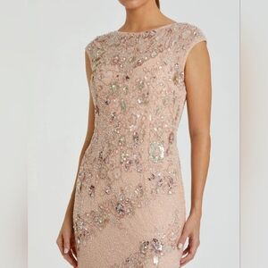 Mac Duggal 5500 Pink Floral Embellished Cap Sleeve Trumpet Gown 14 Wedding Party NWT. See all pictures for details.
