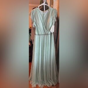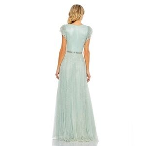 Mac Duggal 5502 NWOT SEQUINED WRAP OVER RUFFLED CAP SLEEVE GOWN