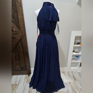 Mac Duggal 55035 High Neck Chiffon Gown NWT size 16 Navy Blue
