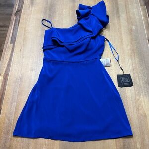 Mac Duggal 55286 Mini Dress Ruffle One Shoulder Size 8 Royal Blue New
