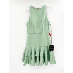 Mac Duggal 55291 Pistachio Green Ruffled Sleeveless Jewel Neck Dress Size 4 NWT