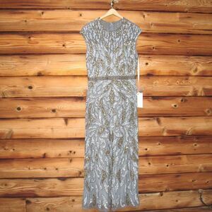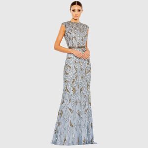 Mac Duggal 5532 Womens Platinum Embellished Illusion Cap Sleeve Column Gown