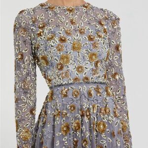 Mac Duggal 5533 Womens Embellished High Neck Long Sleeve Gown Dress Platinum