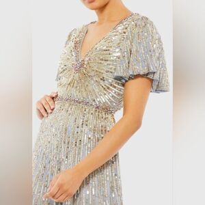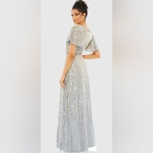 Mac Duggal 5538 Embellished Butterfly Sleeve Column Gown NWOT sz 10 platinum
