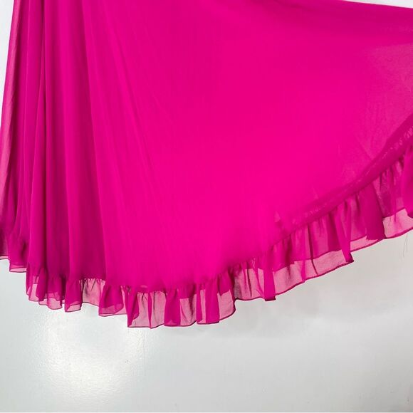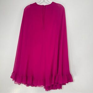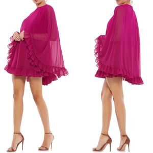 Mac Duggal 55407 High Neck Ruffle Cape Fuchsia (Pink) Chiffon Mini Dress, Size 8
