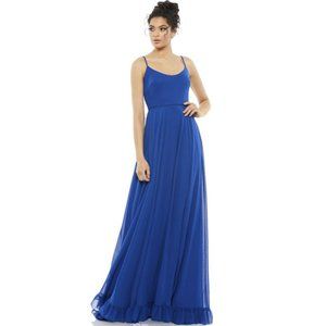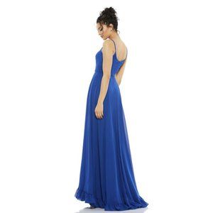 Mac Duggal 55408 Size 16 Royal Blue Chiffon Ruffled Hem Long Maxi Gown Dress NWT