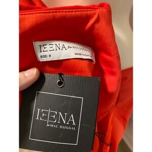 Mac Duggal 55627 V Neck Bow Detail Flowy Midi Dress Chili Red 8