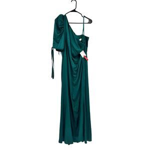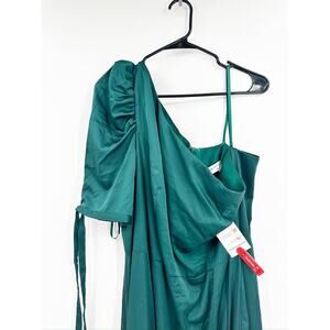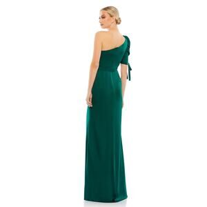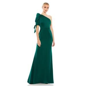 Mac Duggal 55632 Empress Green Satin One Shoulder Puff Sleeve Trumpet Gown 20