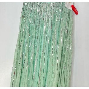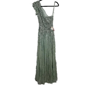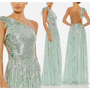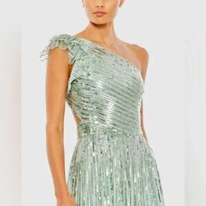 Mac Duggal 5565 Pistachio Green Sequined One Shoulder Flutter Sleeve Gown