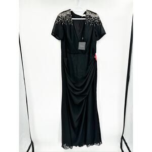 Mac Duggal 55704 Black Sequined Embellished Shoulder Evening Gown 16 NEW