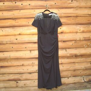 Mac Duggal 55704 Womens Black SEQUINED EMBELLISHED SHOULDER EVENING GOWN