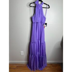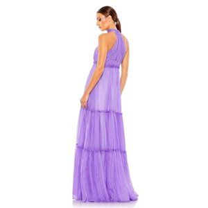 Mac Duggal Ruched Tiered High Neck Bow Evening Gown Dress Orchid