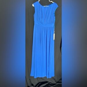 Mac Duggal 55863 NWT Blue Pleated Bateau Cap Sleeve A Line Gown