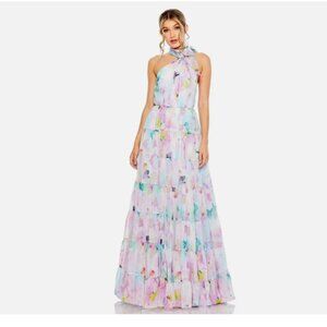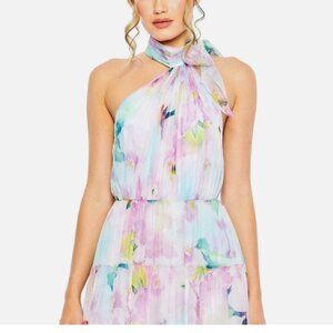 Mac Duggal 55881 Floral Print Asymmetrical Halter Neck Tiered Gown