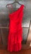 Turn heads with this stunning red one-shoulder evening dress. Perfect for any special occasion, this dress features a flattering silhouette and elegant design.