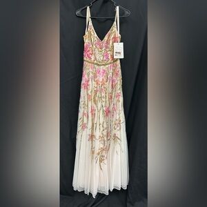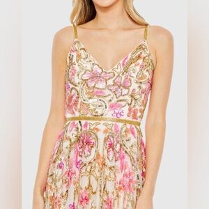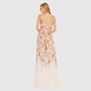 Mac Duggal 5671 NWT Flawed Beige V Neck Floral Embellished Spaghetti Strap Gown