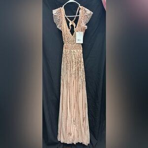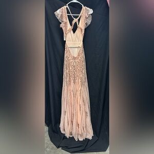 Mac Duggal 5682 NWT Sequined Flutter Cap Sleeve Cut Out A Line Gown
