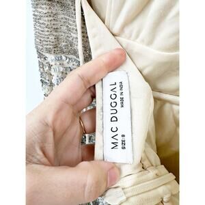 Mac Duggal 5687 Nude Silver Sequin Beaded Lace Up One Shoulder Formal Gown 8