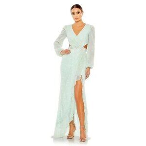 Mac Duggal 5745 Mint Long Sleeve V Neck Cut Outs High Slit Maxi NEW Size 8