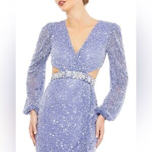 Mac Duggal 5745 Sequined Faux Wrap Cut out Gown Size 6 Lilac NWT