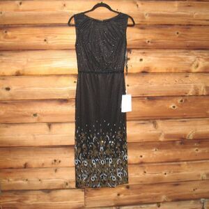This cocktail-length dress features a high neckline and a beaded mesh overlay, adding a touch of sparkle. The waist detail enhances the flattering silhouette, making it a perfect pick for your next event. Crafted from 100% polyester for comfort and style.