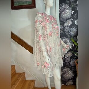 Elegant sheer dress with pink floral embroidery. Perfect for special occasions.