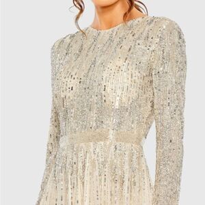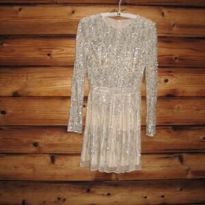 Details: Long Sleeves, Sequin Embellished, Full Back, Back Zipper Closure