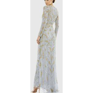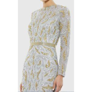 Mac Duggal $598 Formal Gown Gray Sequins Beaded Maxi Dress Long Sleeve NWT