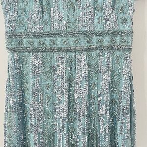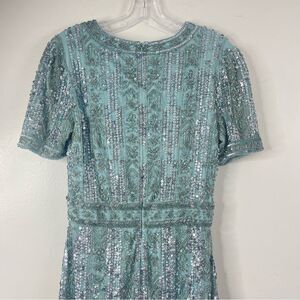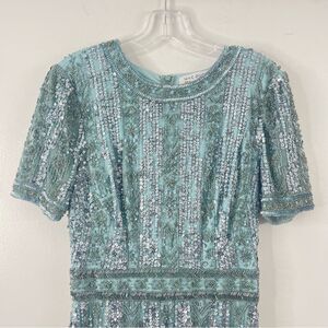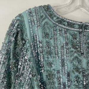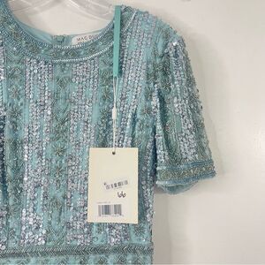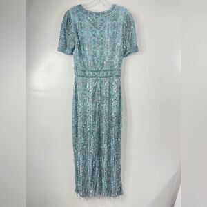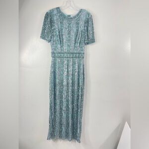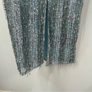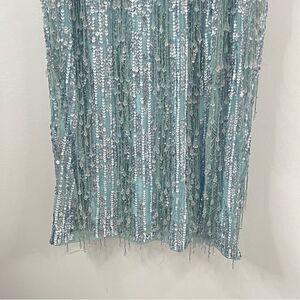 Mac Duggal 5980 Size 8 High Neck Crystal Fringe French Blue Beaded Column Dress