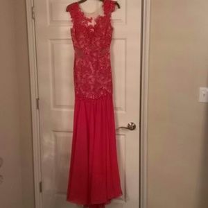 This dress was worn once and it is in great condition. Size 4. Mac Duggal 61041R. Open back. Red lace