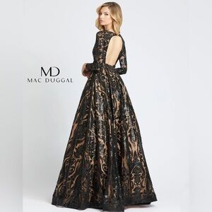 Mac Duggal 66334H NWT Deep V Neck Black Lace Gown