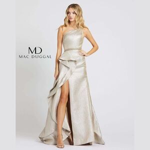 Mac Duggal 66975 Size 10 Gold Silver Oyster Metallic Evening Gown Maxi Dress