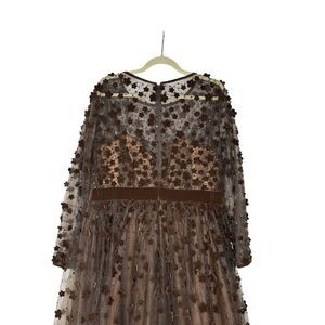 Mac Duggal 67007 Brown Embellished Illusion High Neck Long Sleeve Fit & Flare Dress| 16