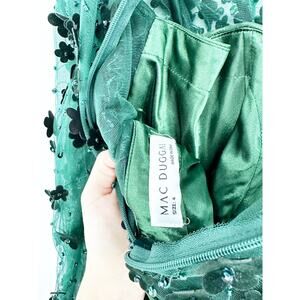 Mac Duggal 67007 Embellished Illusion High Neck Velvet Floral Dress 4 Emerald