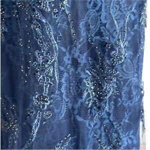 Mac Duggal 67493 Navy Blue Lace Beaded Sheer Flutter Sleeve Gown| Size 10