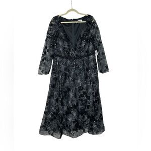Mac Duggal 67541 Black Floral Sequin Long Sleeve Cocktail Dress| Size 16W