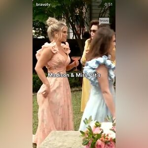 Engagement , wedding guest , formal , spring , summer , dramatic , feminine , boho , bohemian , floral , ruffles , flowy , gala , ball , prom , vacation , resort , resortwear , Emily in Paris , Madison lecroy , Dakota fanning
