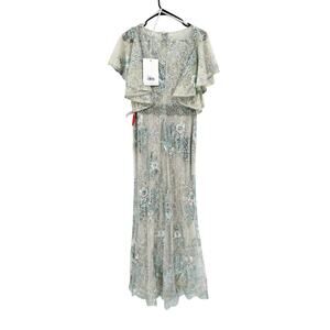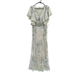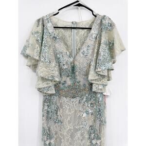 Mac Duggal 67842 Bell Sleeve Floral Seafoam Embellished Gown Dress 8 NWT