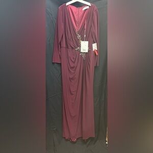 Mac Duggal 67848 NWOT FAUX WRAP LONG SLEEVE GOWN W/ APPLIQUÉ DETAIL