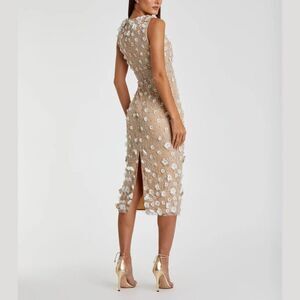 Mac Duggal 67853 Size 14 White Beige Nude 3D Floral Sleeveless Midi Sheath Dress