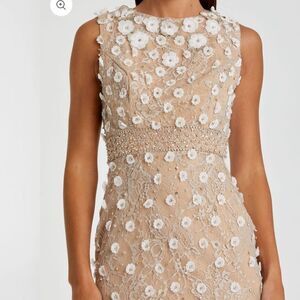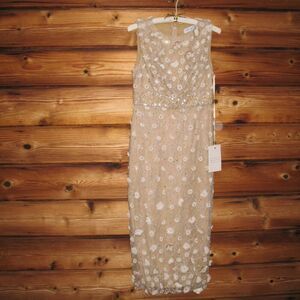 Mac Duggal 67853 Womens Neutral Floral Applique Sleeveless Midi Dress