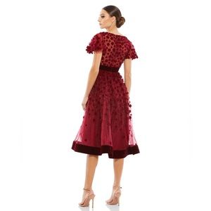 Mac Duggal 67854 Floral Embellished Butterfly Sleeve Velvet Hem Midi Dress NWT