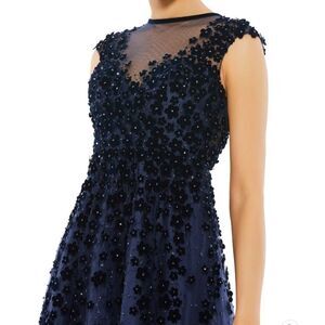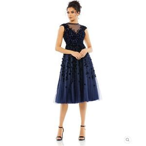 Mac Duggal 67910 Womens EMBELLISHED ILLUSION HIGH NECK CAP SLEEVE MIDI DRESS
