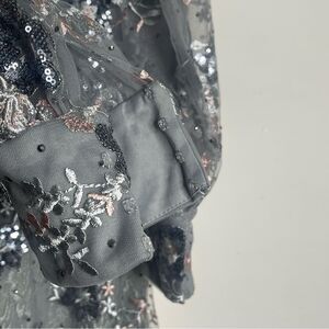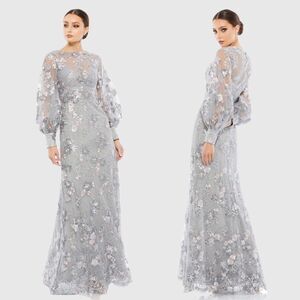 Mac Duggal 67936 Size 12 Bishop Sleeve Embroidered Mermaid Platinum Dress